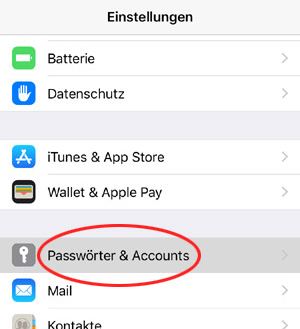 Tippen Sie auf Passwörter & Accounts.