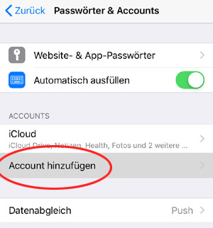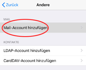 Tippen Sie auf Mail-Account hinzufügen.