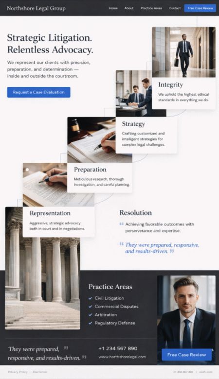 律师事务所需要信任、清晰的流程和快速的可达性——这不会阻塞您的团队在电话上。我们创建一个数字化的律师事务所形象,提供在线预约、可靠的表单、自动提醒,客户流咨询及结构化的新闻/案件归档。系统可扩展:从简洁的律师事务所形象到包含App、人工智能聊天助手、客户账户、参考文献和评价的高级解决方案——适合独立律师和大型律师事务所。